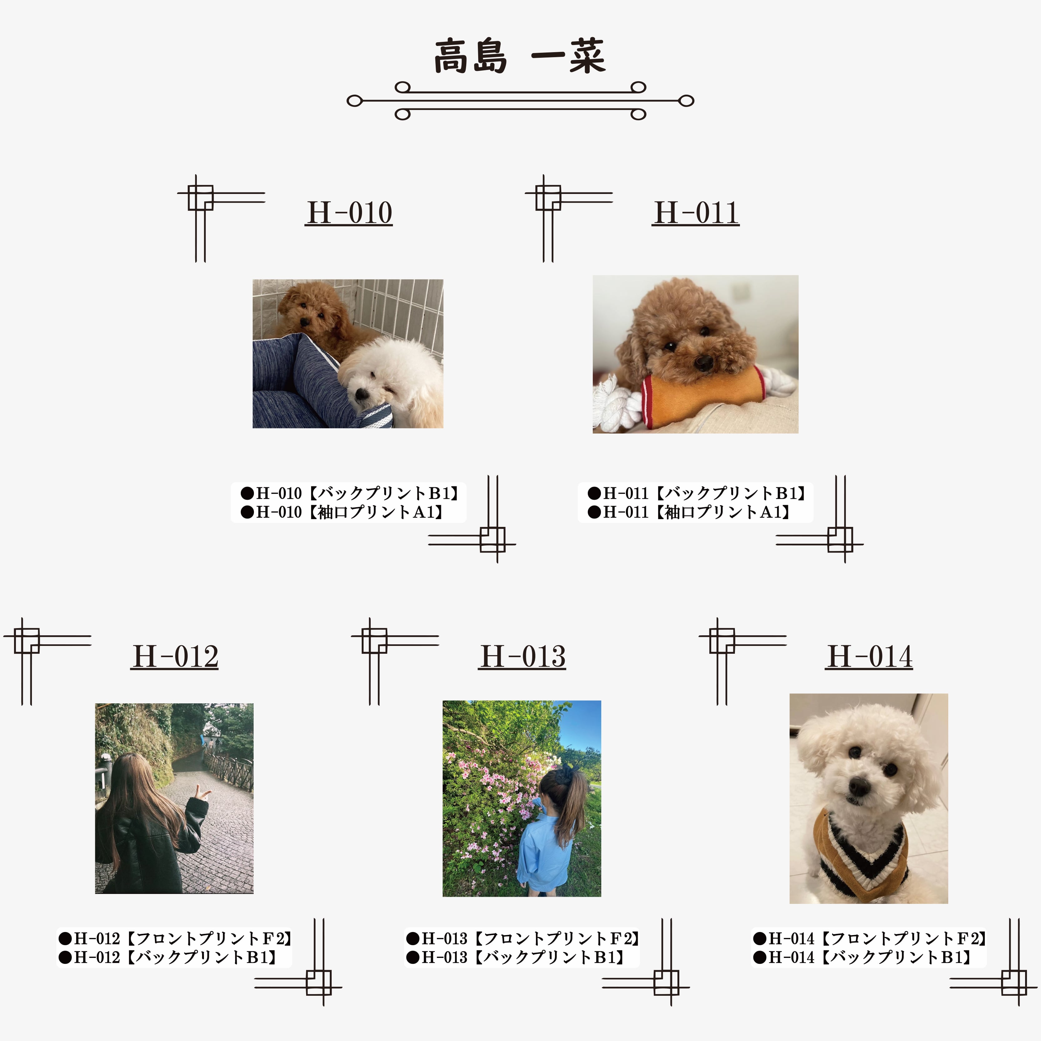 【オリジナルプルオーバーパーカー作成】 タレント直筆のイラストや本人が撮影した写真をプリントし、自分だけのセミオーダーパーカーが作成できます! ★スライド順に『ボディー説明』→『プリント位置』→『各タレントのデザイン』を確認ください ◆作成手順 ①パーカーのカラーとサイズをお選びください ・『ボディー説明』のスライドをタップし参照ください ・下のプルタブよりパーカーボディーのサイズとカラーを選択してください ②タレントのデザインを付ける位置をお選びください ・『プリント位置』と『各タレント別デザイン』のスライドをタップしご参照ください ・スライド内「S-001」などがプリントの品番、( )内が対応カラーとなっております。各プリント位置のプルタブ内から品番(カラー)を選択してください。写真にはカラー選択はございません。 ※「フロントF1」と「フロントF2」はプリントのデザインが重なる可能性がある為、両方を選択することは出来ません。「フロントF1」と「フロントF2」を同時選択し注文した場合、キャンセルとなりますのでご注意ください ★商品イメージは『GALLERY』のスライドをご参考ください ★タグはオリジナルデザインを使用いたします ★「Sweat Pants 8.4」「Sweat Half-Pants 8.4」と同素材の為、セットアップとして使用も可能です ●品番 『S』=佐奈宏紀 『A』=青山 凱 『E』=江口 航 『M』=宮嶋すみれ 『T』=琥城雄太 『H』=高島一菜 ~素敵なパーカーをお作りください~